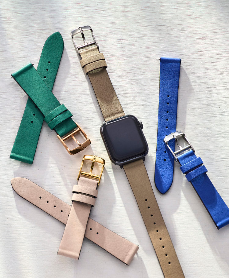 空気をたっぷり含んだスフレのように軽く、レザーとは思えないさらふわな質感。着けている感覚がないほど、肌になじむストレスフリーなレザーストラップです。