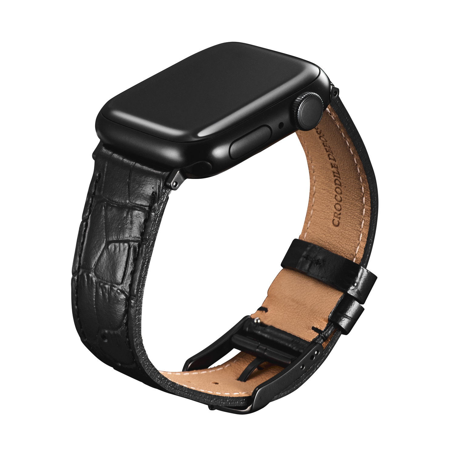 国内でなめした高品質なレザーに、細かい凹凸を繊細に表現する日本の型押し技術を用い、風合い豊かなクロコダイルスタンパードレザーに仕上げたストラップ