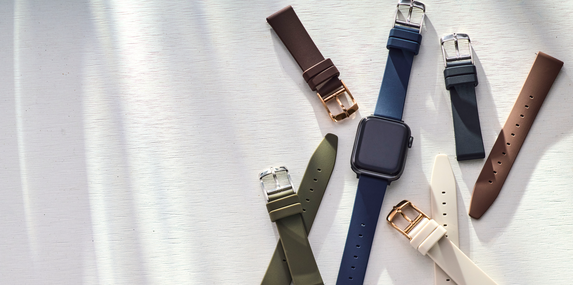 別売のアップルウォッチ用アダプタを使用することで、どのサイズのストラップでもお持ちのアップルウォッチに装着することができます。