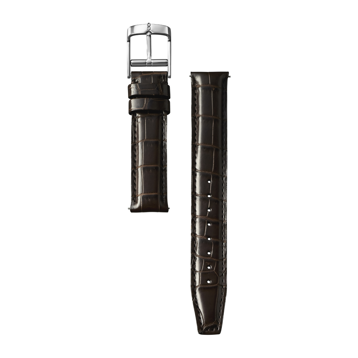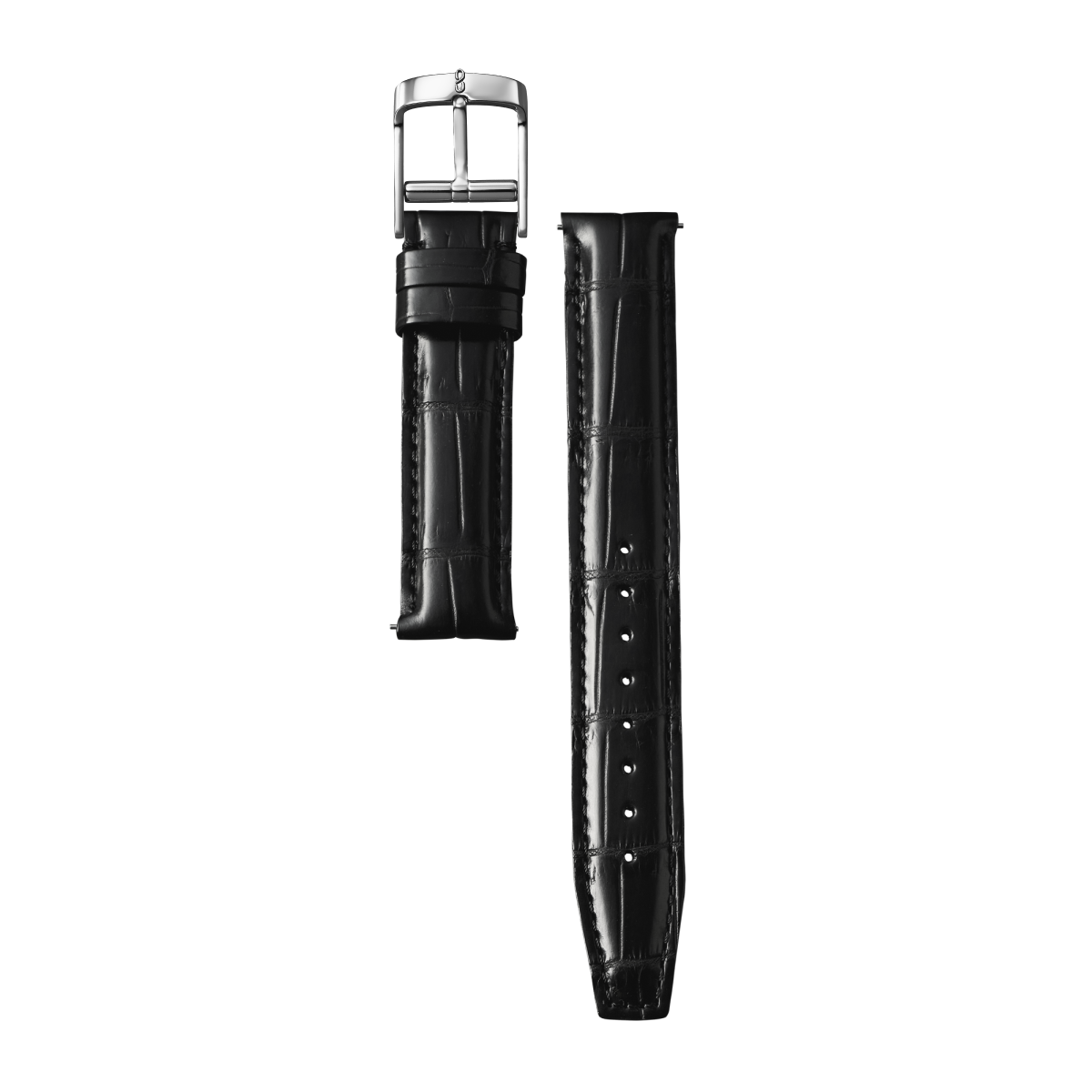 ワニ革の中でも最もポピュラーな「ナイルクロコダイル」。横腹の「玉斑」、腹部の「竹斑」が細かく美しいクロコダイルレザーです。腕に直接触れる裏材には高級車のシート材で使用される素材を採用。機械式時計の重厚なケースをラグジュアリーに魅せる、厚みと立体感のあるデザインが特徴です。