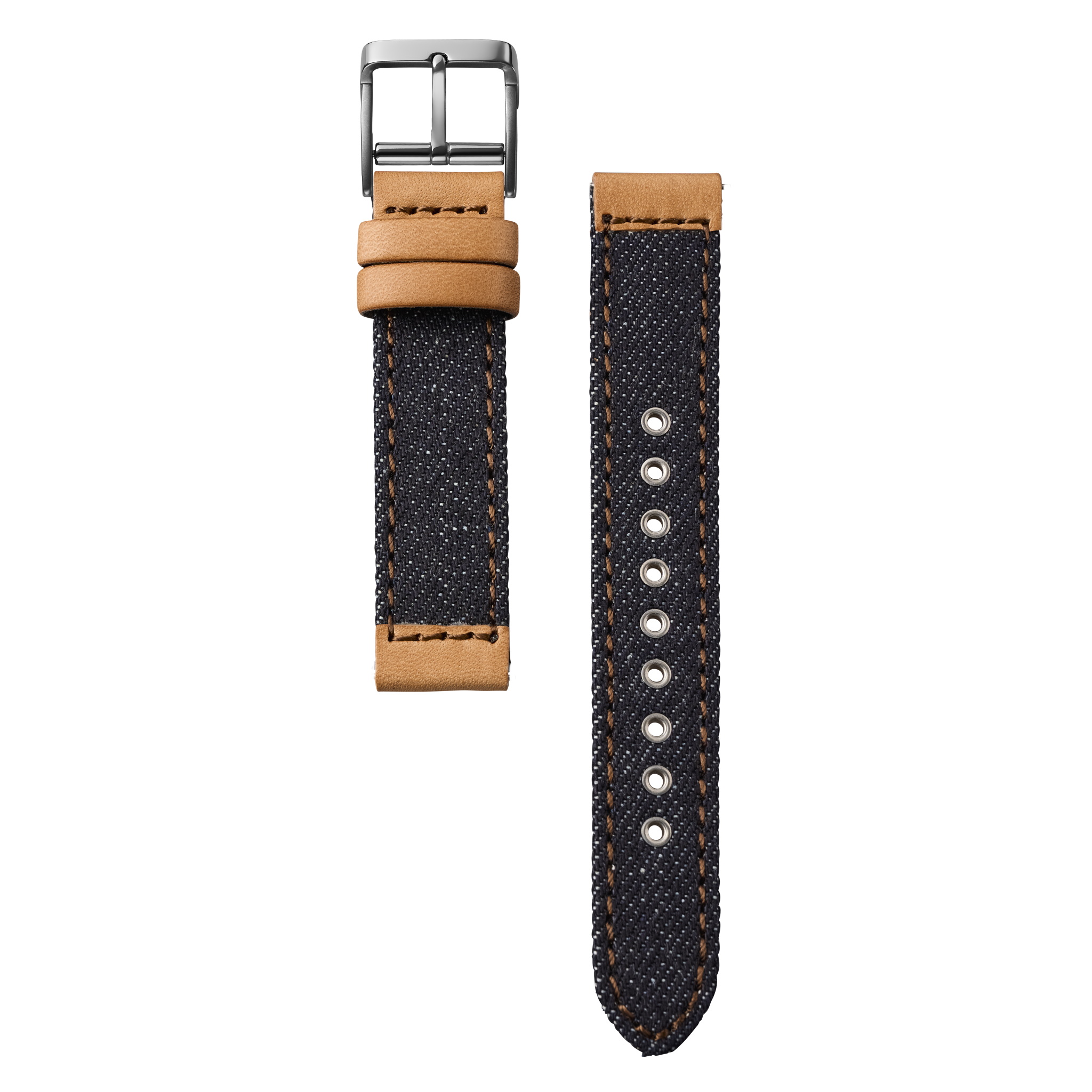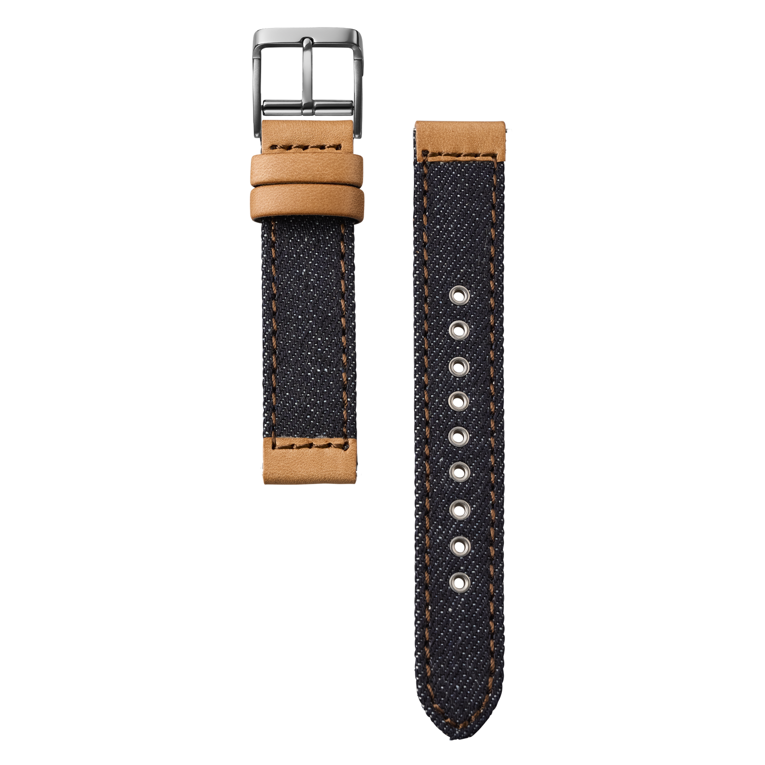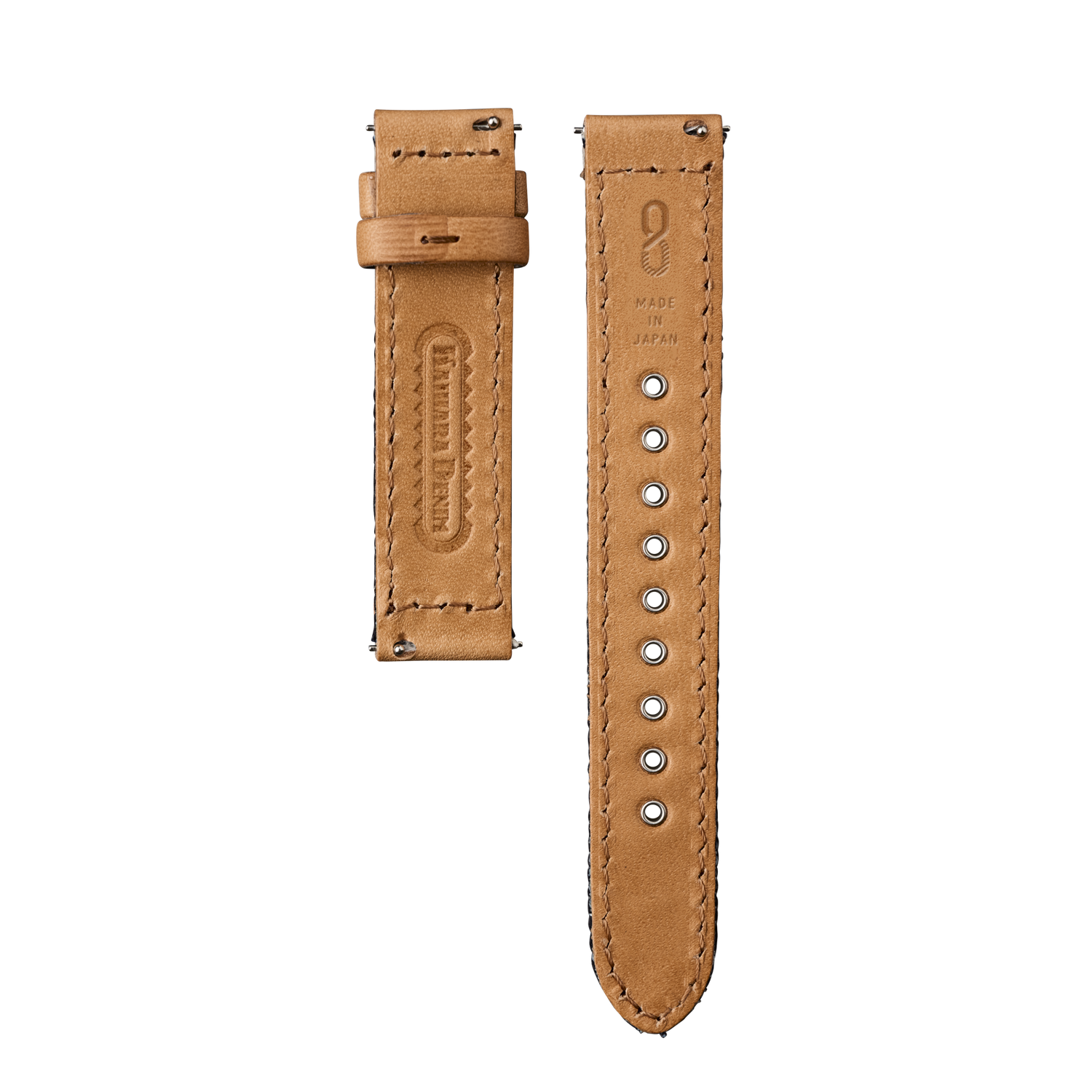 業界トップシェアを誇る「カイハラデニム」を使用。デニムらしい要素を散りばめたストラップです。