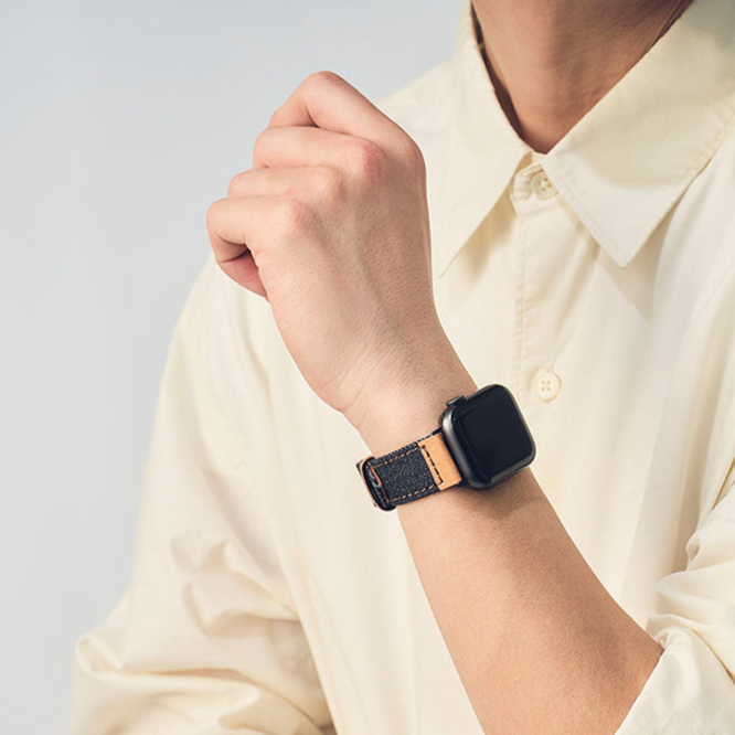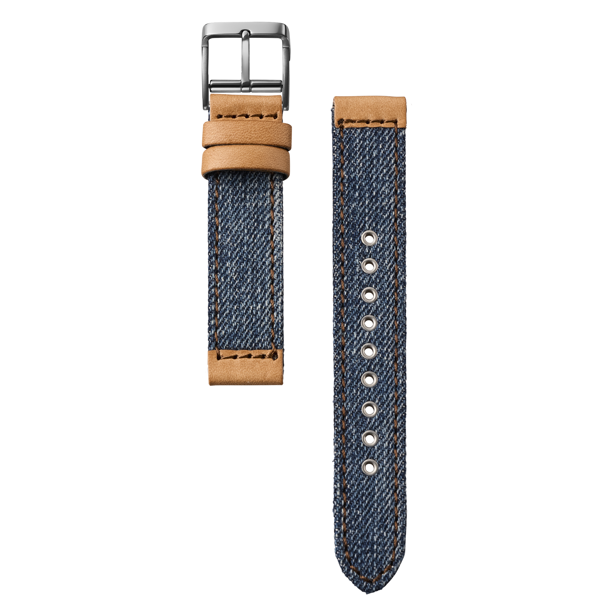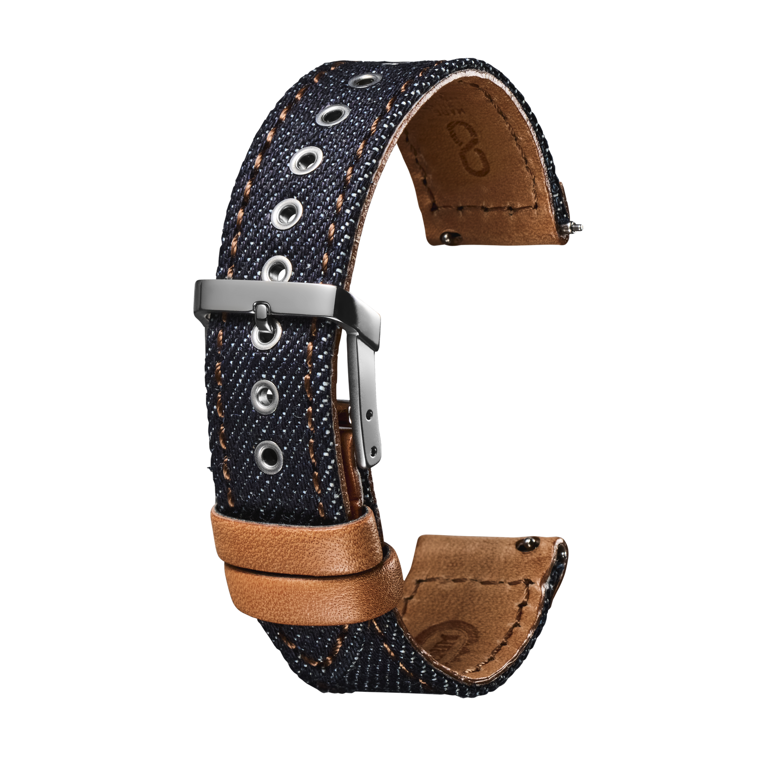 業界トップシェアを誇る「カイハラデニム」を使用。デニムらしい要素を散りばめたストラップです。