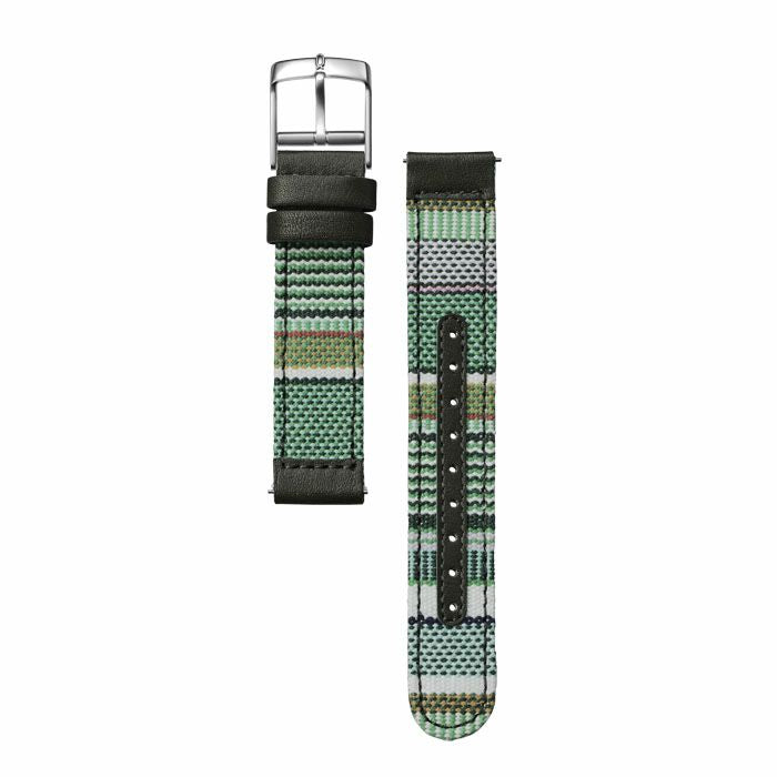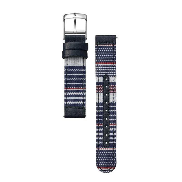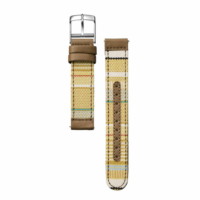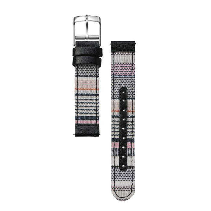 アウトドアファッションで人気のマルチストライプを採用したカジュアルデザインの帆布ストラップです。