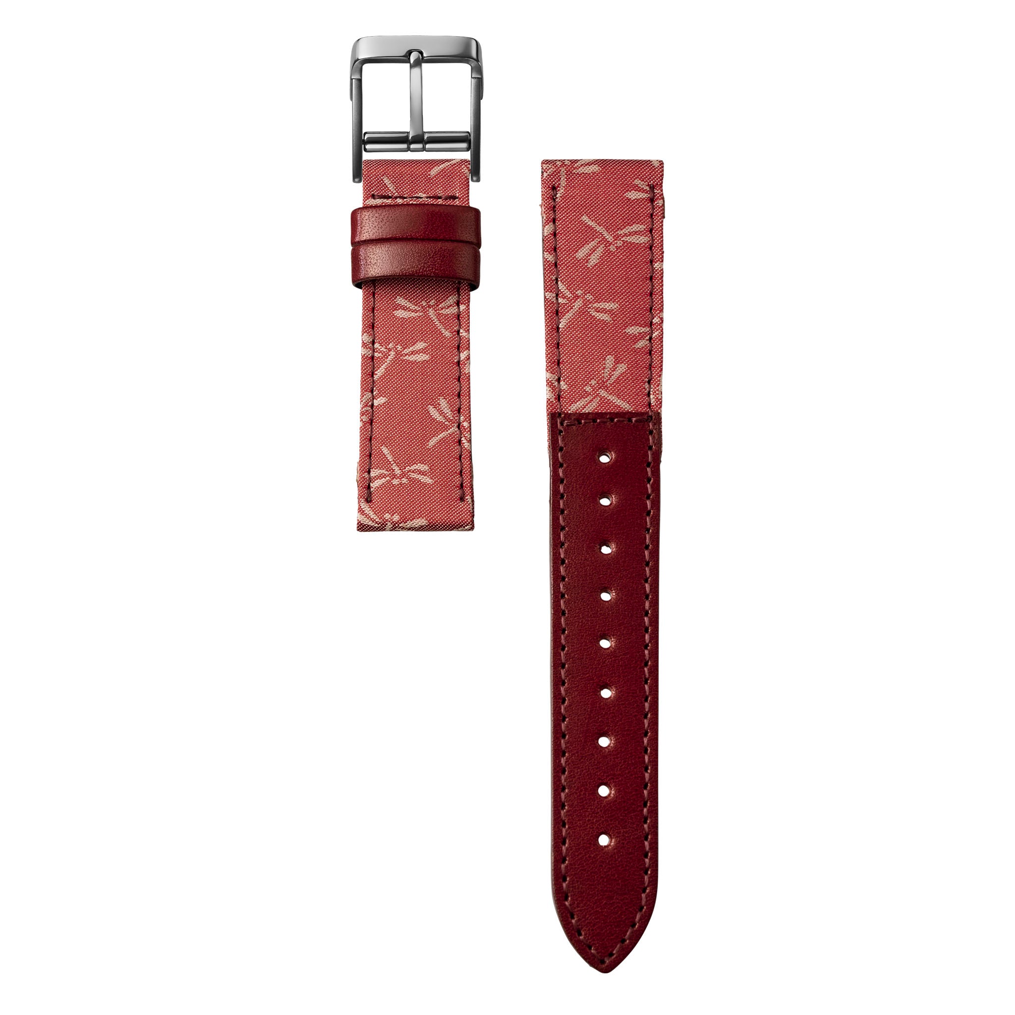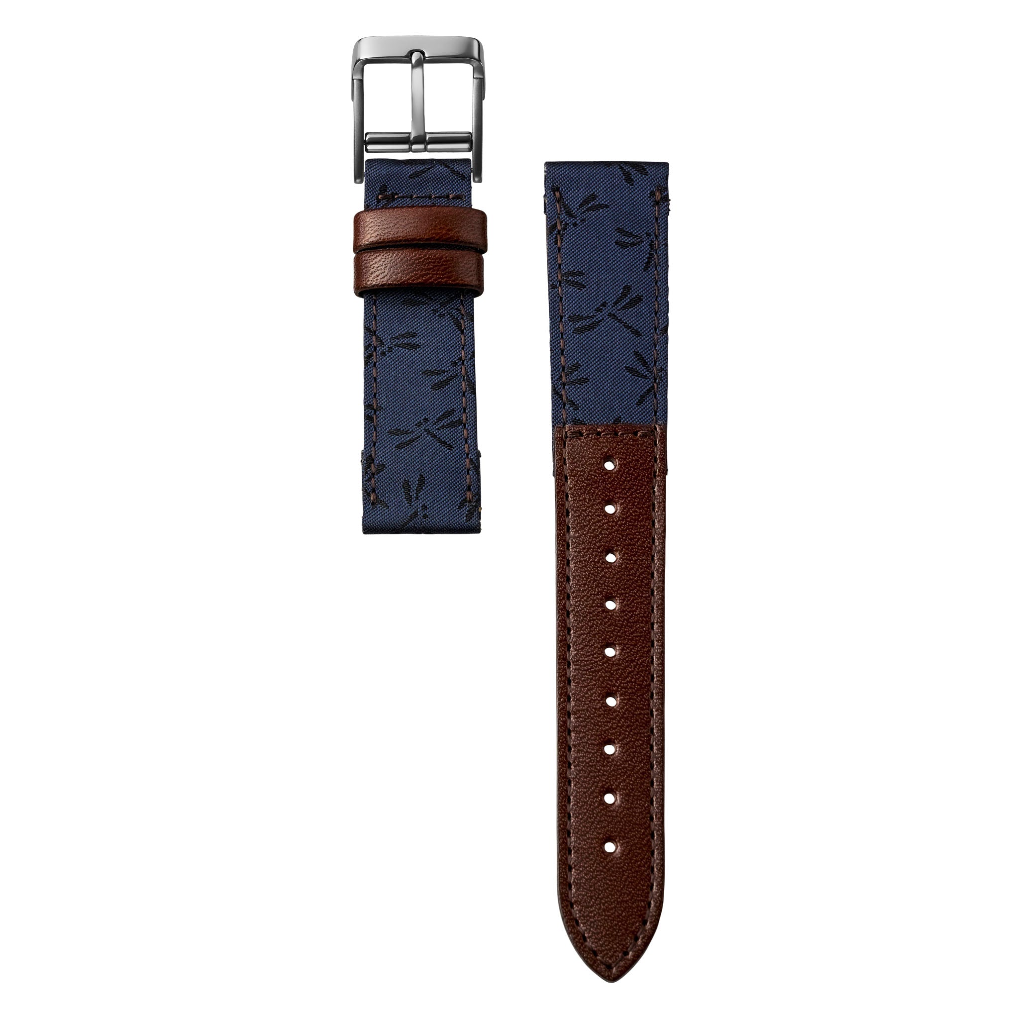 トンボは前に向かって飛び続けて後退しないことから、昔から縁起物として『勝ち虫』と呼ばれ戦国武将たちの甲冑などに使用されてきました。武田信玄などの武将が愛用していたところから山梨にはトンボのモチーフが多く残ります。槙田商店の傘でも使用されているトンボ柄をKnotのベルトでも採用しました。