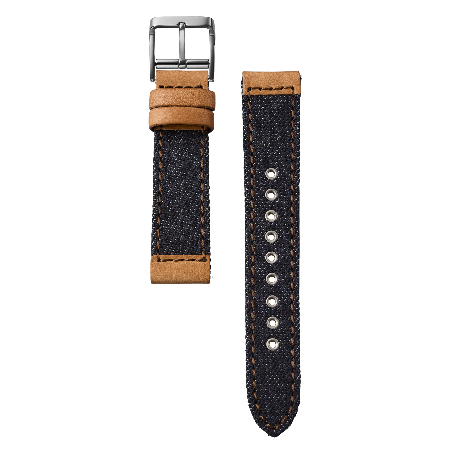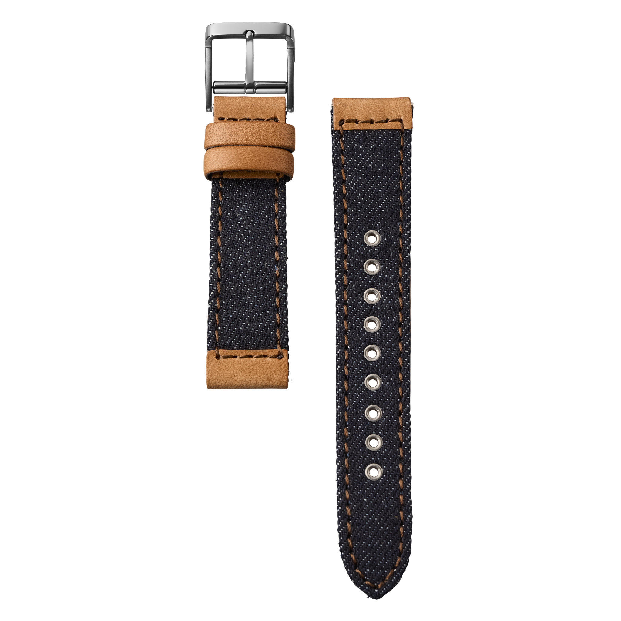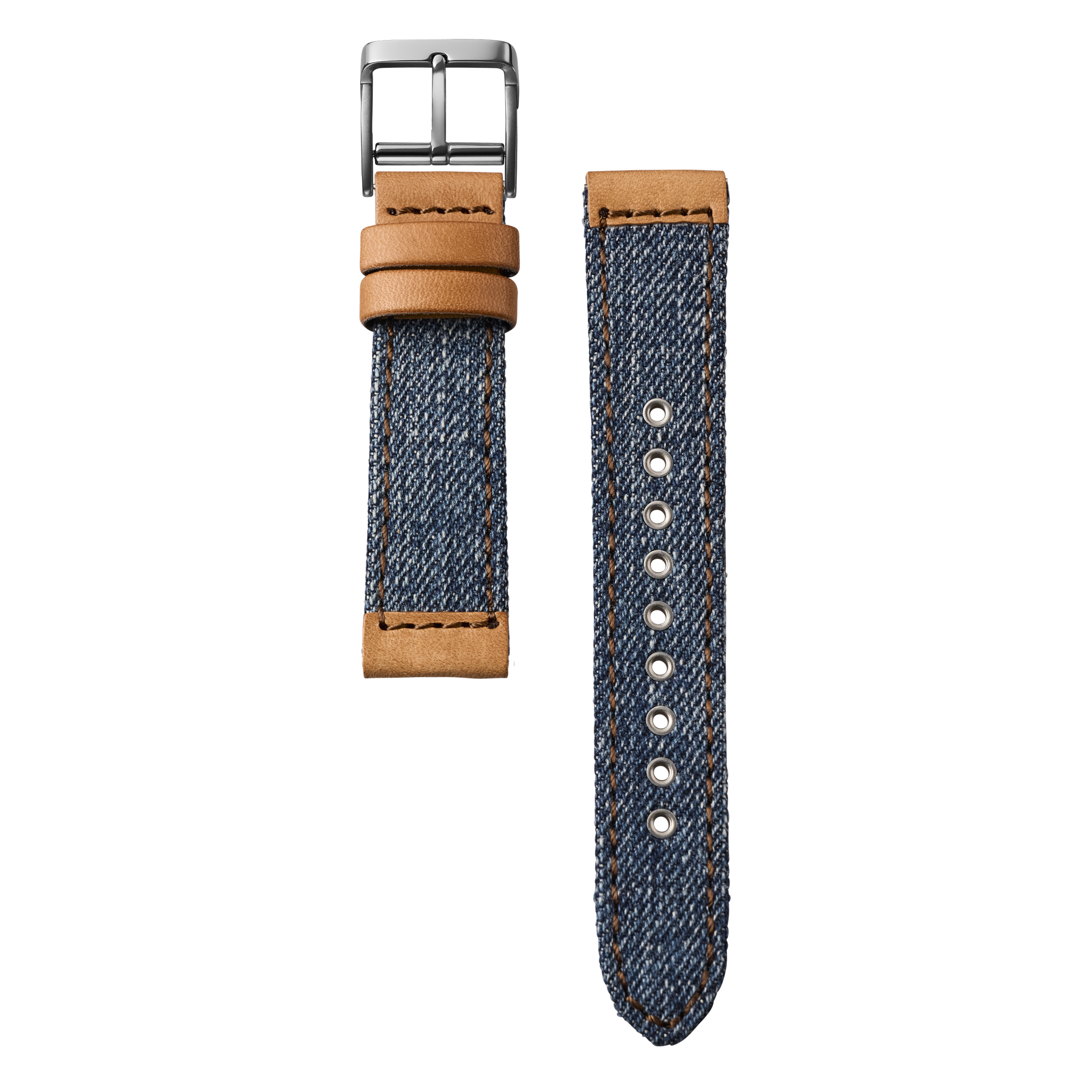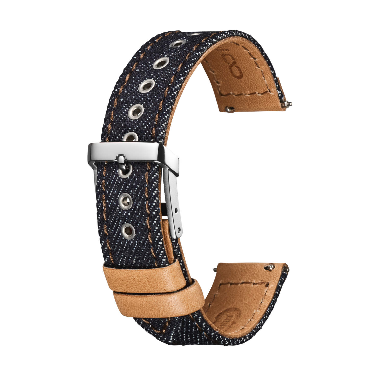 業界トップシェアを誇る「カイハラデニム」を使用。デニムらしい要素を散りばめたストラップです。