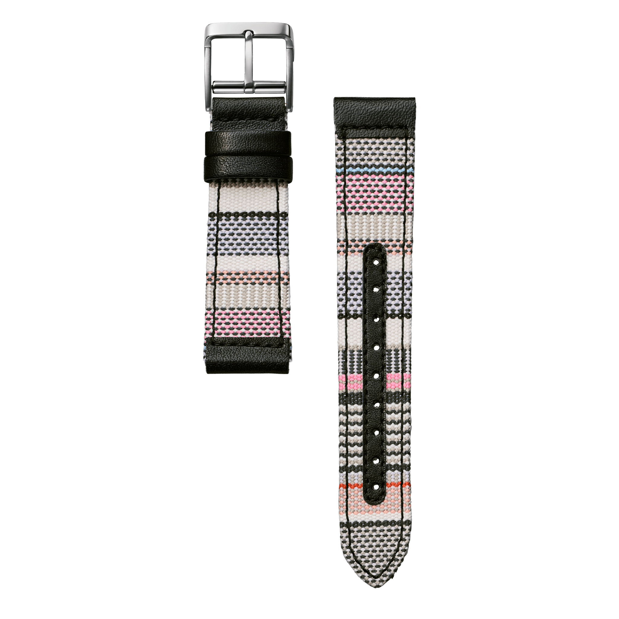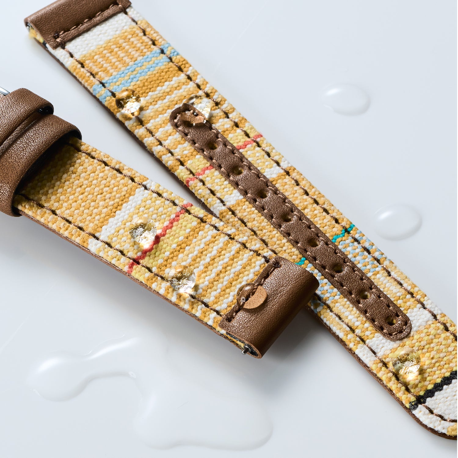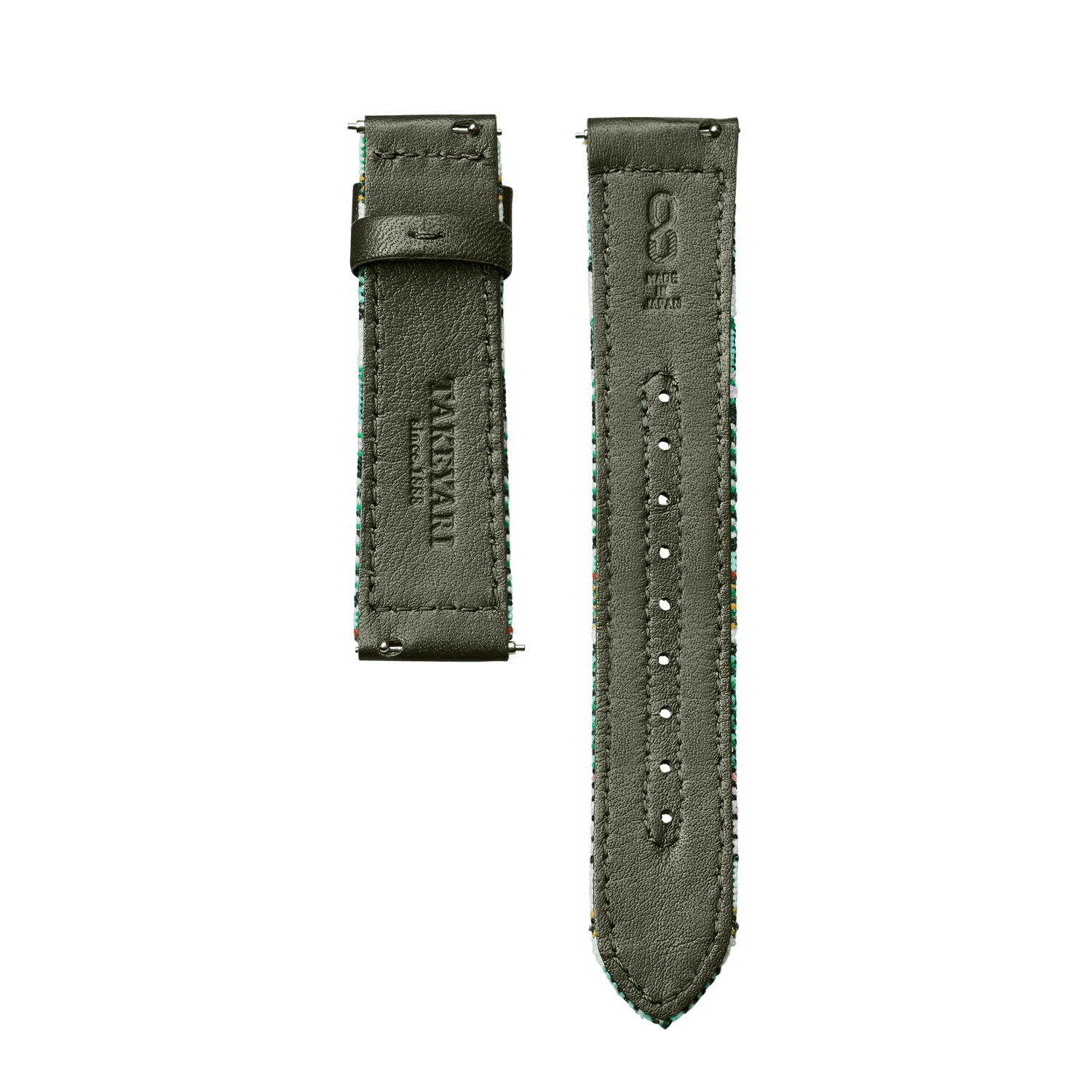 アウトドアファッションで人気のマルチストライプを採用したカジュアルデザインの帆布ストラップです。