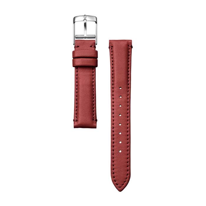 汗水に強く、汚れを洗い流せる防水レザーストラップ。防水性成分を表面に塗るのではなく、革の製作過程、なめしの段階で3M社製のスコッチガード皮革保護剤加工を施すことで、本格防水性能を備えています。スムースレザーの風合いをそのままに、高級感も兼ね備えたフォーマルなデザインです。