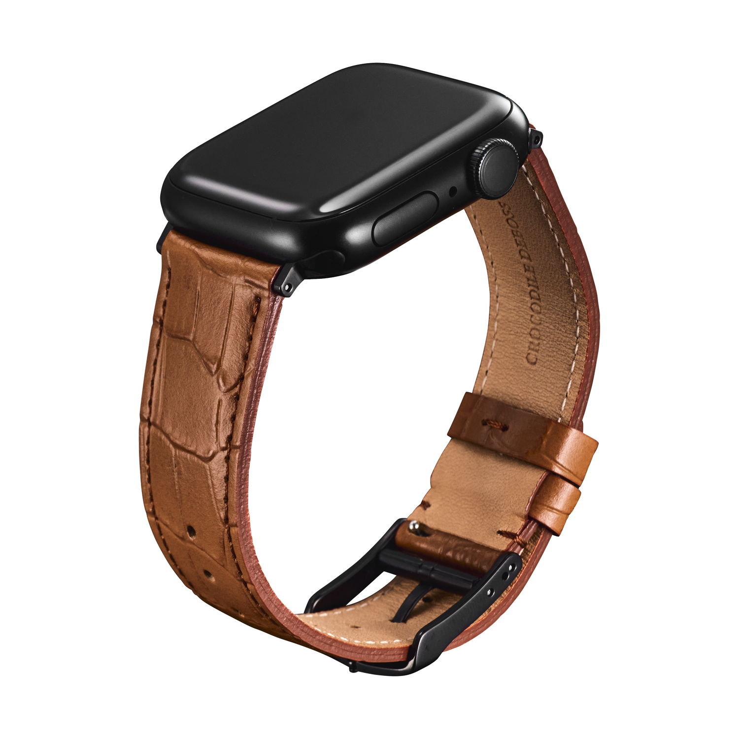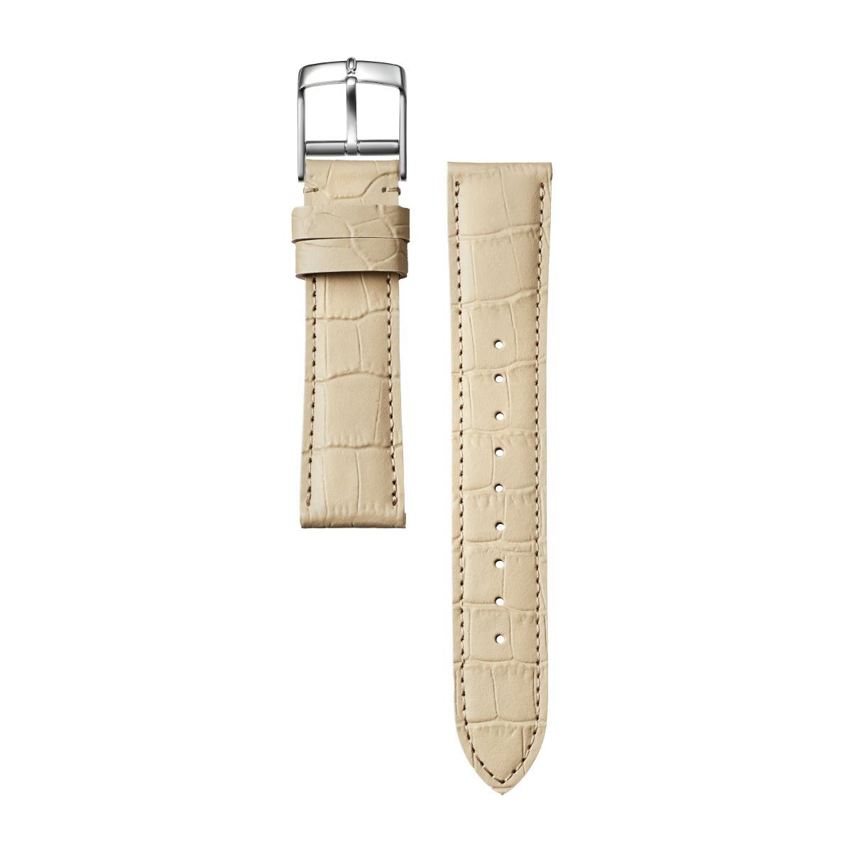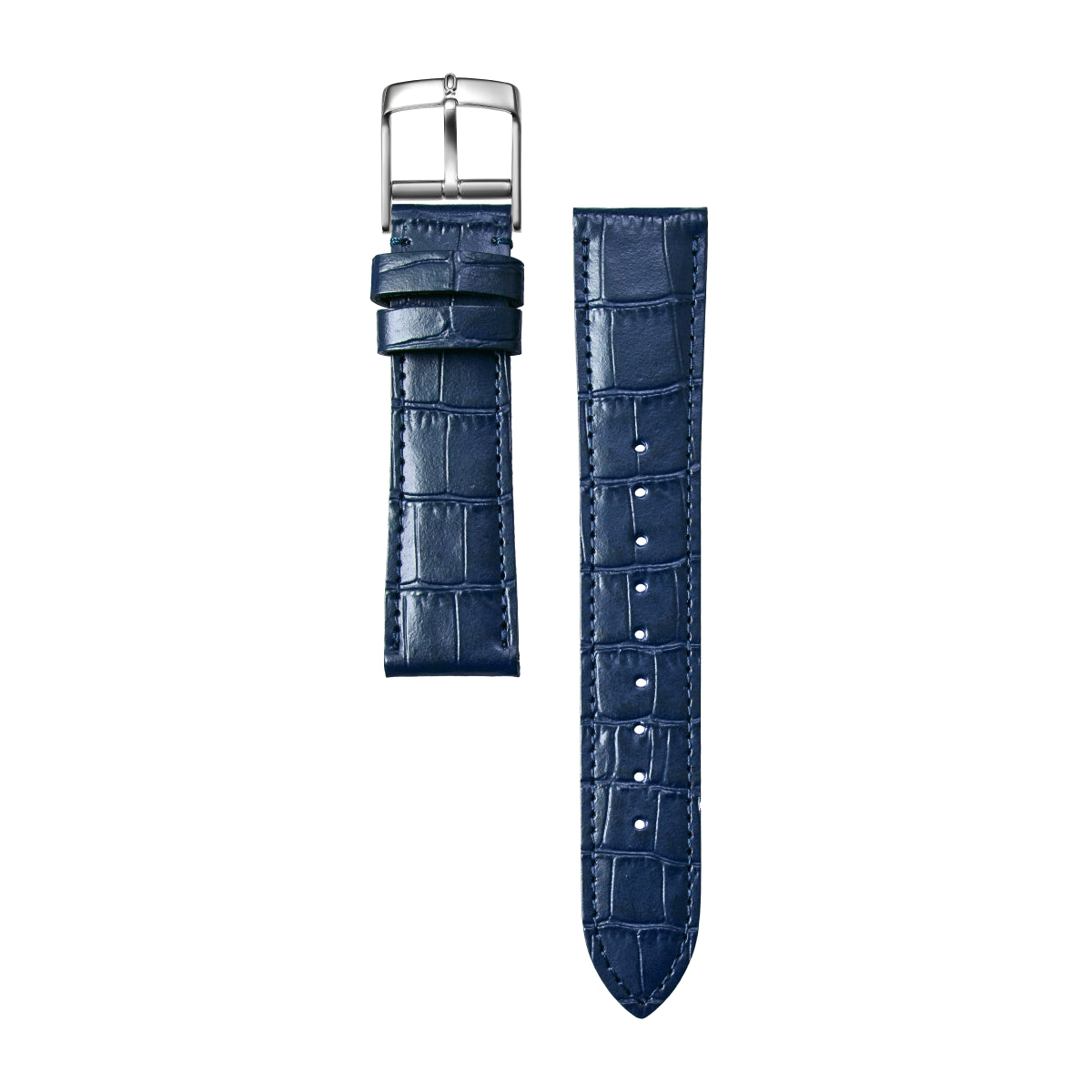 国内でなめした高品質なレザーに細かい凹凸を繊細に表現する日本の型押し技術を用い、風合い豊かなクロコダイルスタンパードレザーに仕上げたストラップ