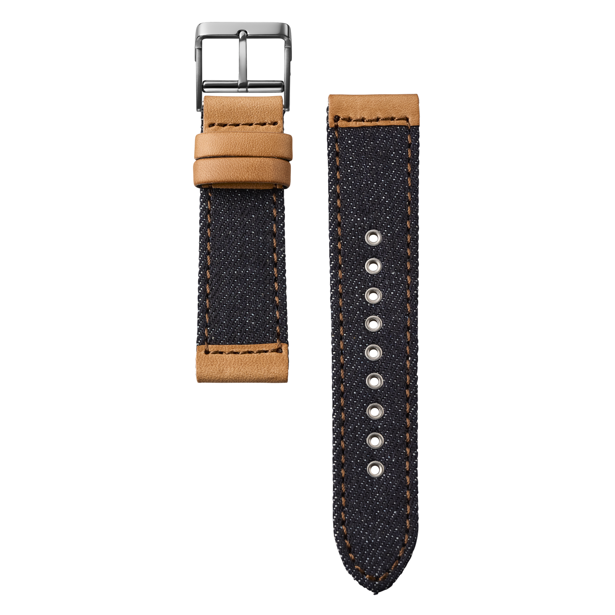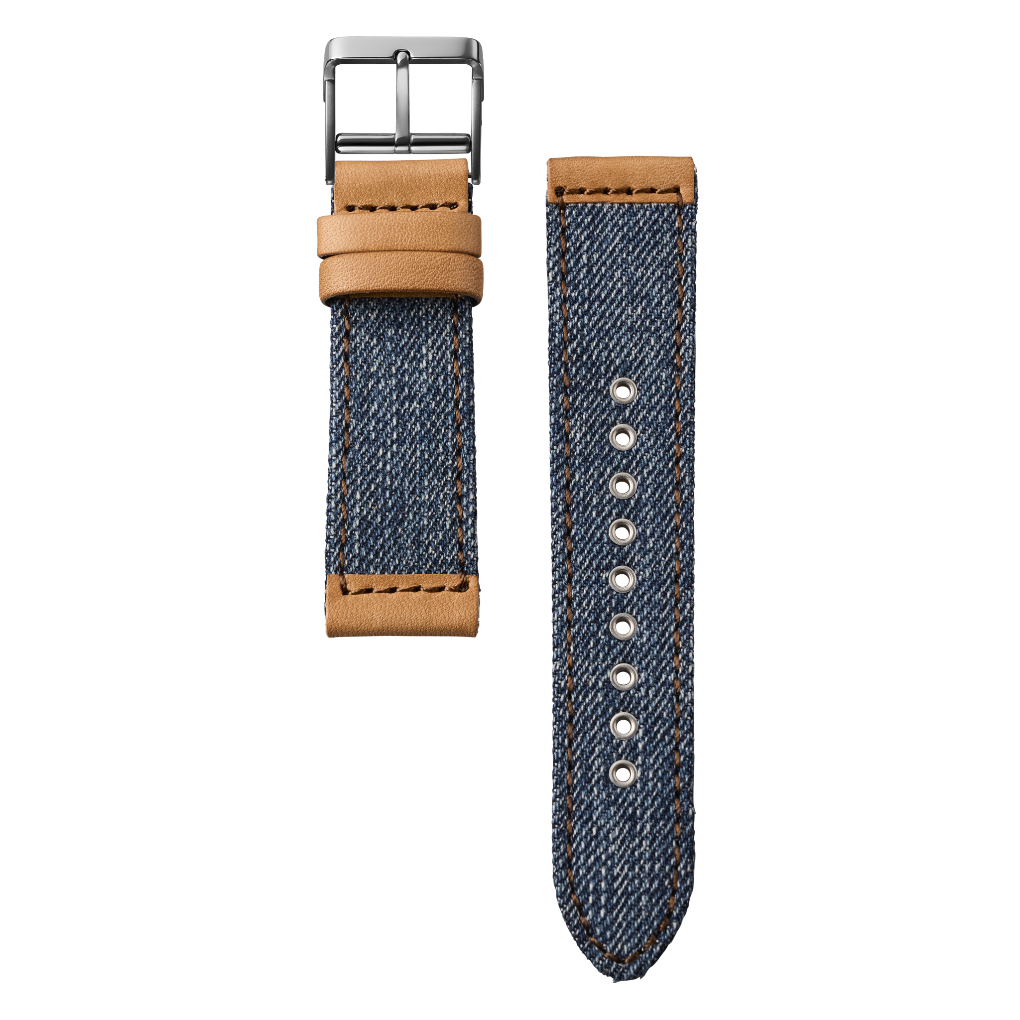業界トップシェアを誇る「カイハラデニム」を使用。デニムらしい要素を散りばめたストラップです。